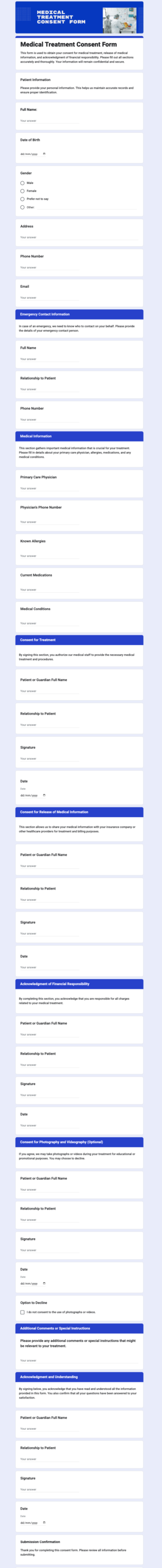 Free Medical Treatment Consent Form Template in Google Forms