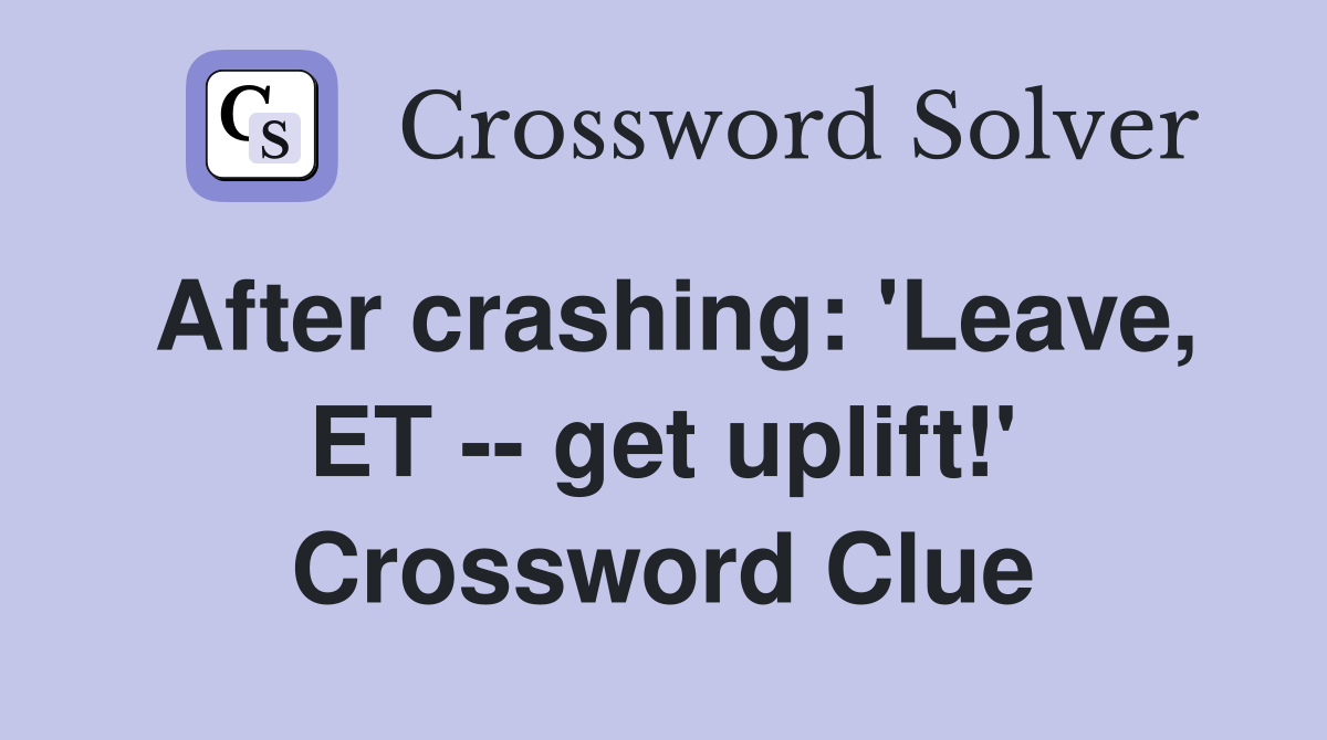 After crashing: #39 Leave ET get uplift #39 Crossword Clue Answers