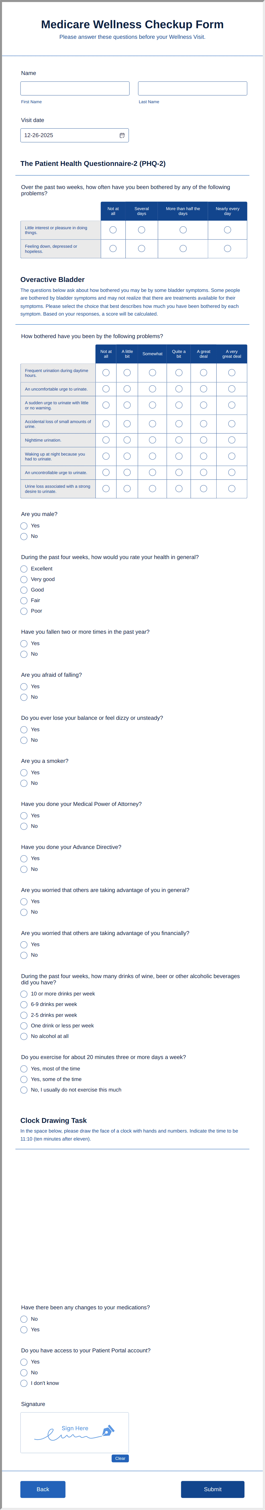 Medicare Wellness Visit Patient Questionnaire Download Printable PDF