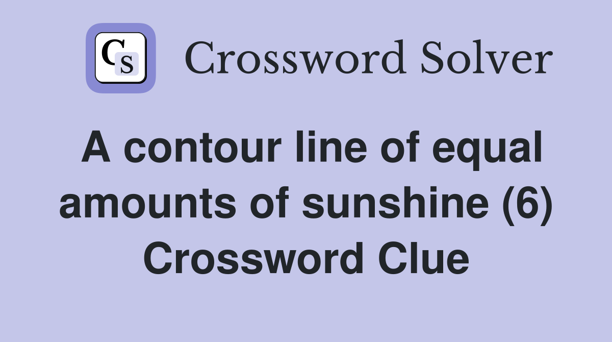 A contour line of equal amounts of sunshine (6) Crossword Clue