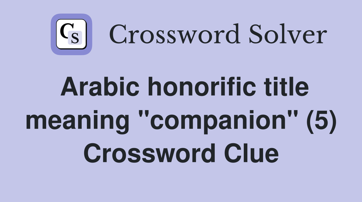 Arabic honorific title meaning quot companion quot (5) Crossword Clue Answers