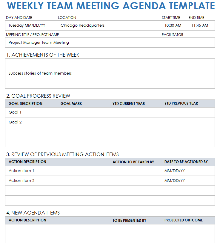 Meeting Agenda Excel Template