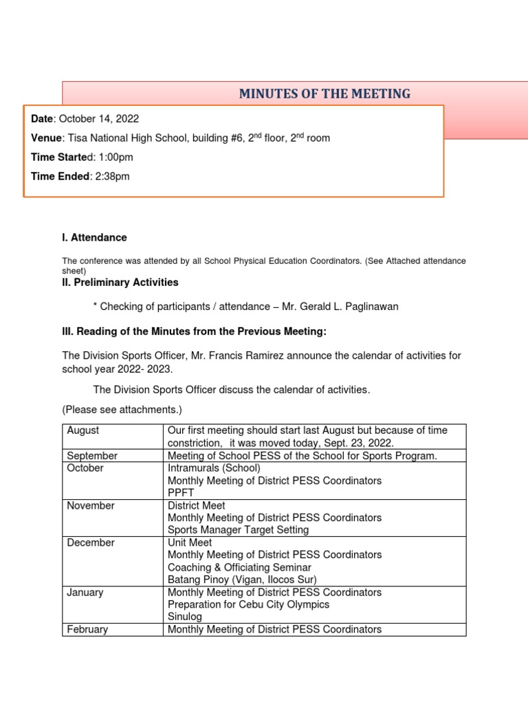 Minutes of The Meeting CGP PDF Learning Behavior Modification