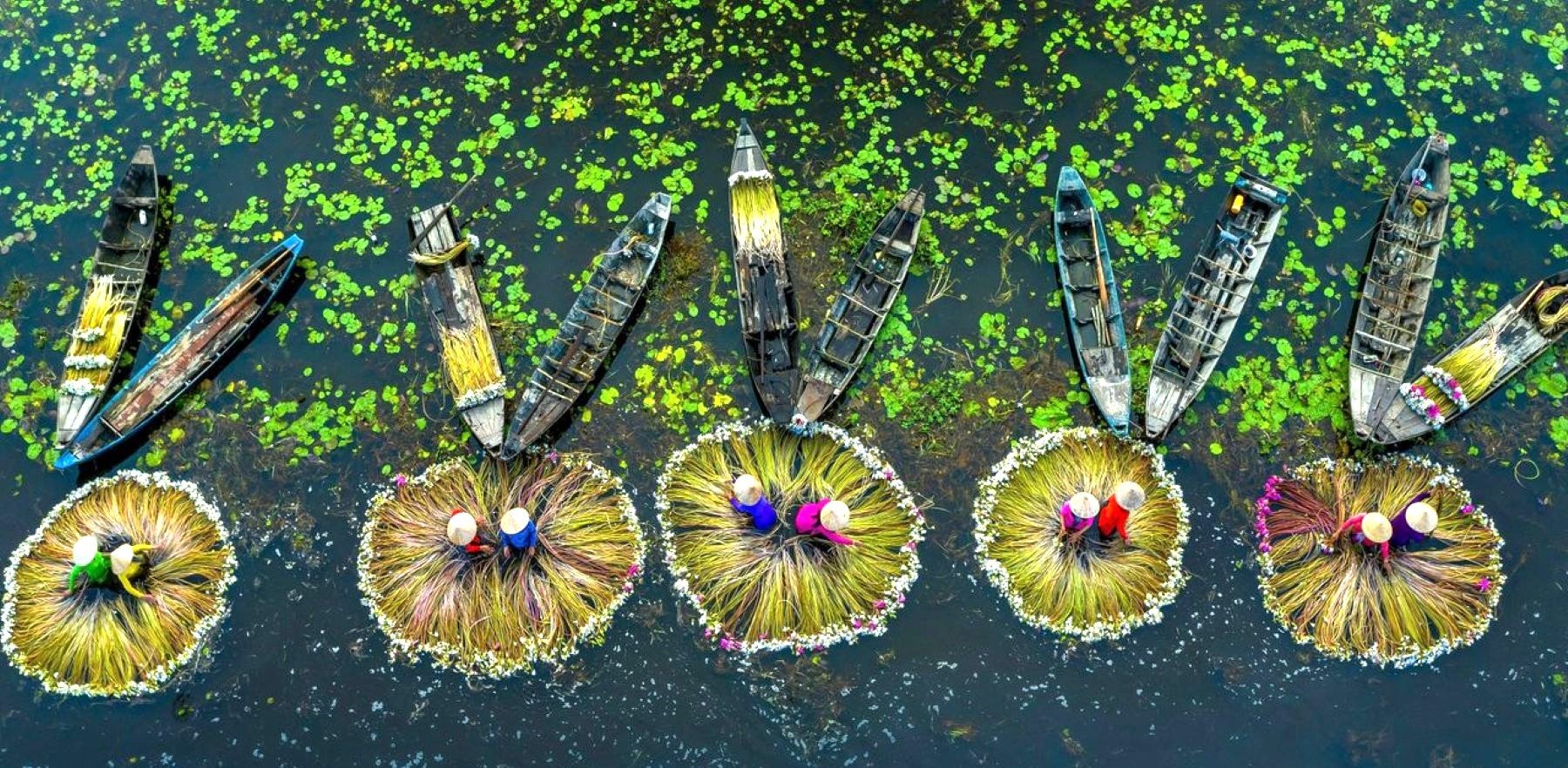 Solve Water Lily harvest Mekong River Delta Long An Vietnam jigsaw