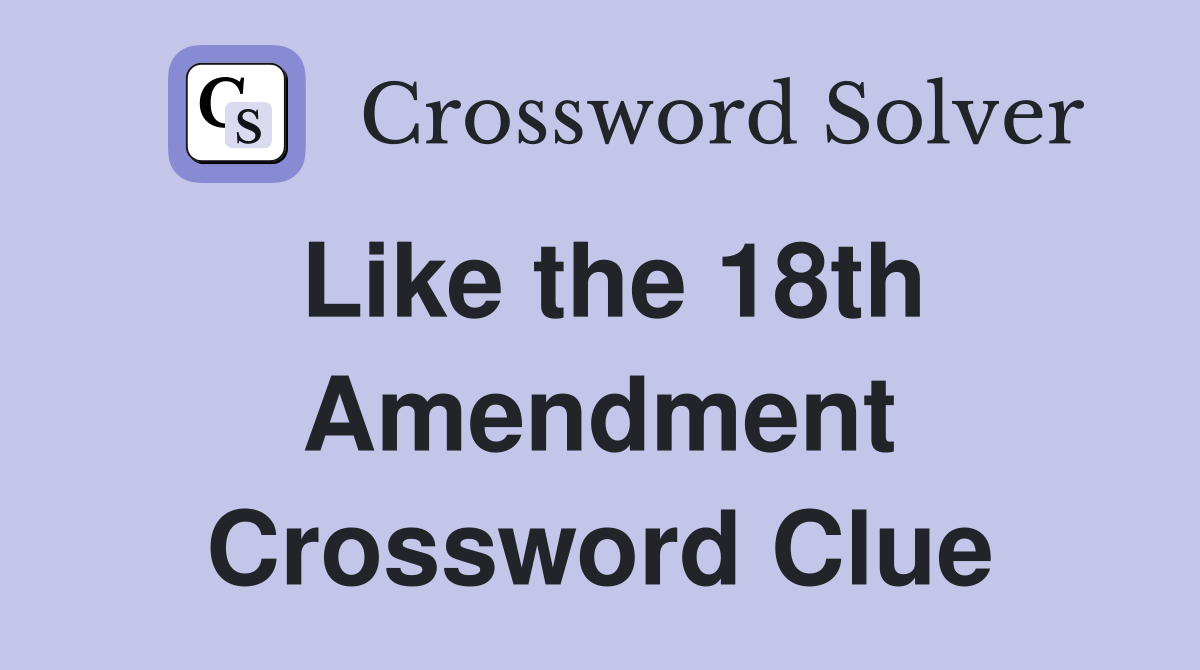 Like the 18th Amendment Crossword Clue Answers Crossword Solver