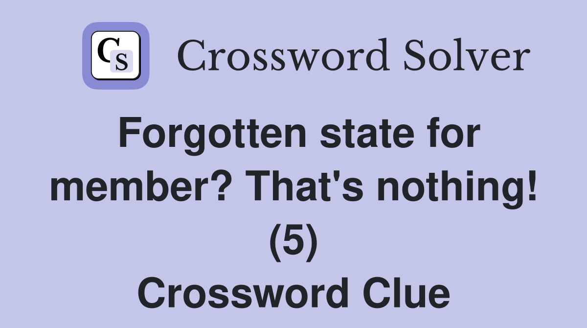 Forgotten state for member? That #39 s nothing (5) Crossword Clue