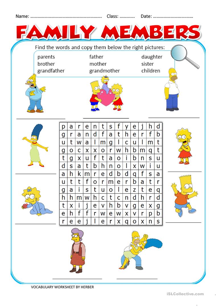 11 Family Crossword Vocabulary Practice English ESL worksh
