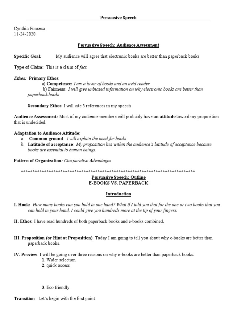 Persuasive Speech Outline Download Free PDF E Reader E Books