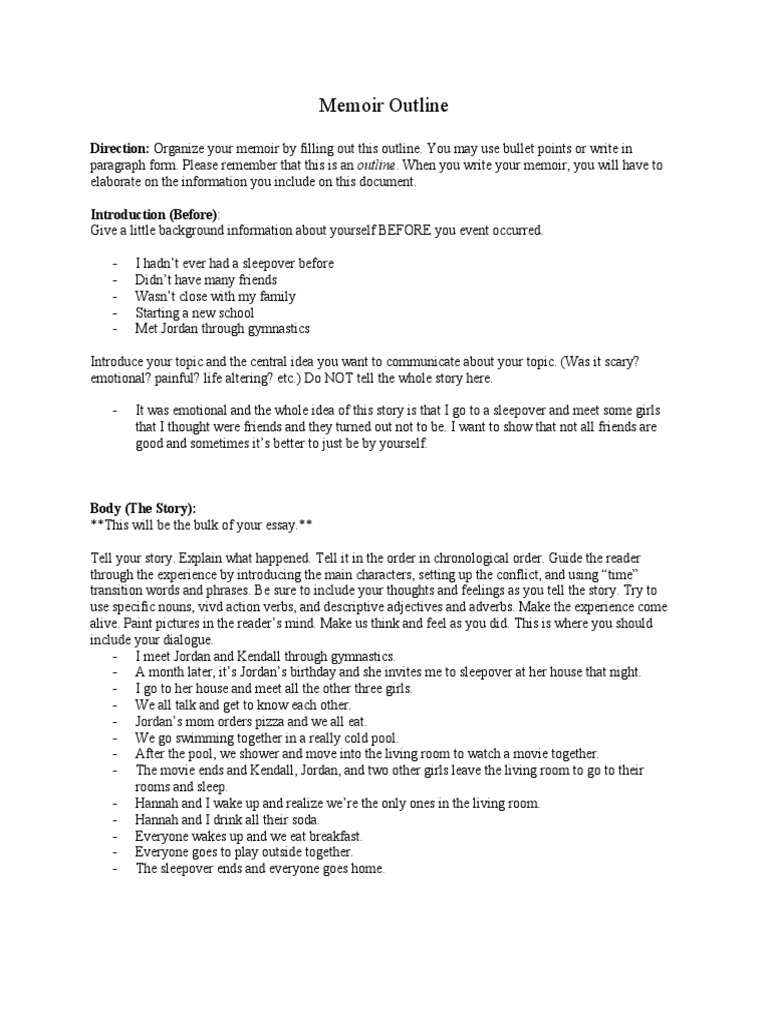 Memoir Outline PDF