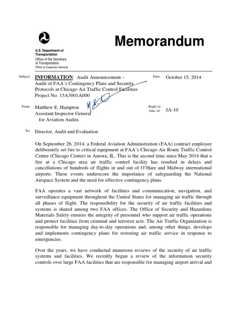 Audit of Chicago FAA Security PDF Air Traffic Control Federal
