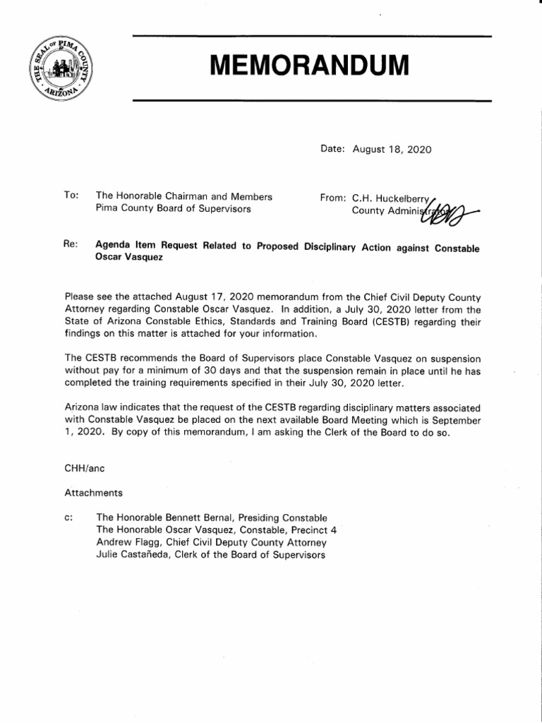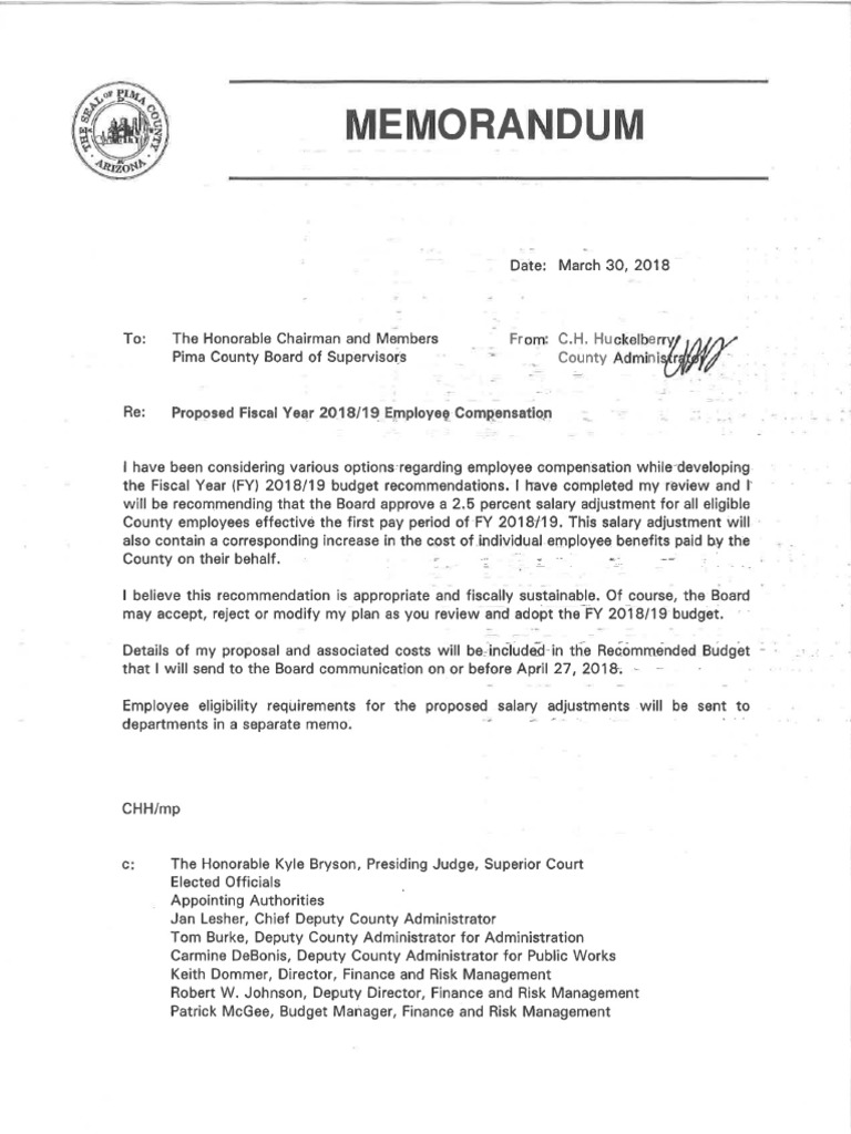 Fillable Online The Honorable Chair and Members Pima County Board of