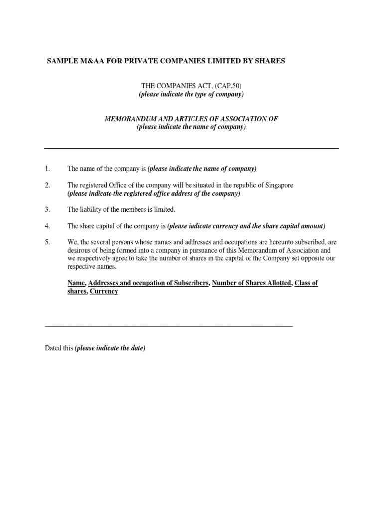 Memorandum and Articles of Association TEMPLATE PDF Board Of