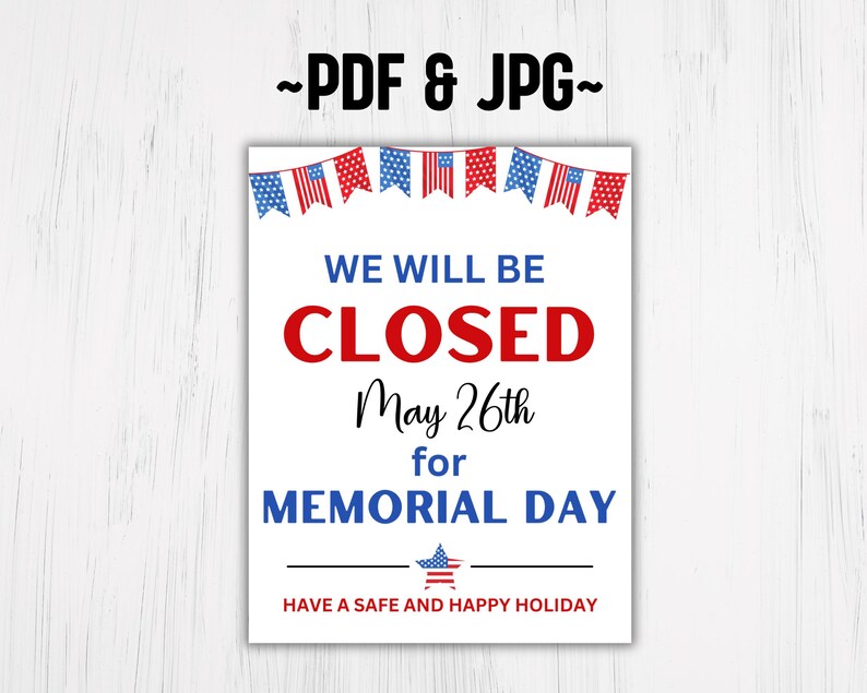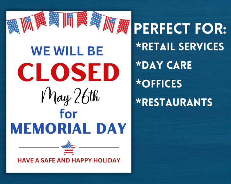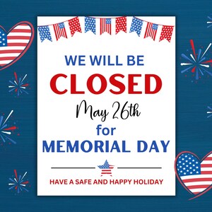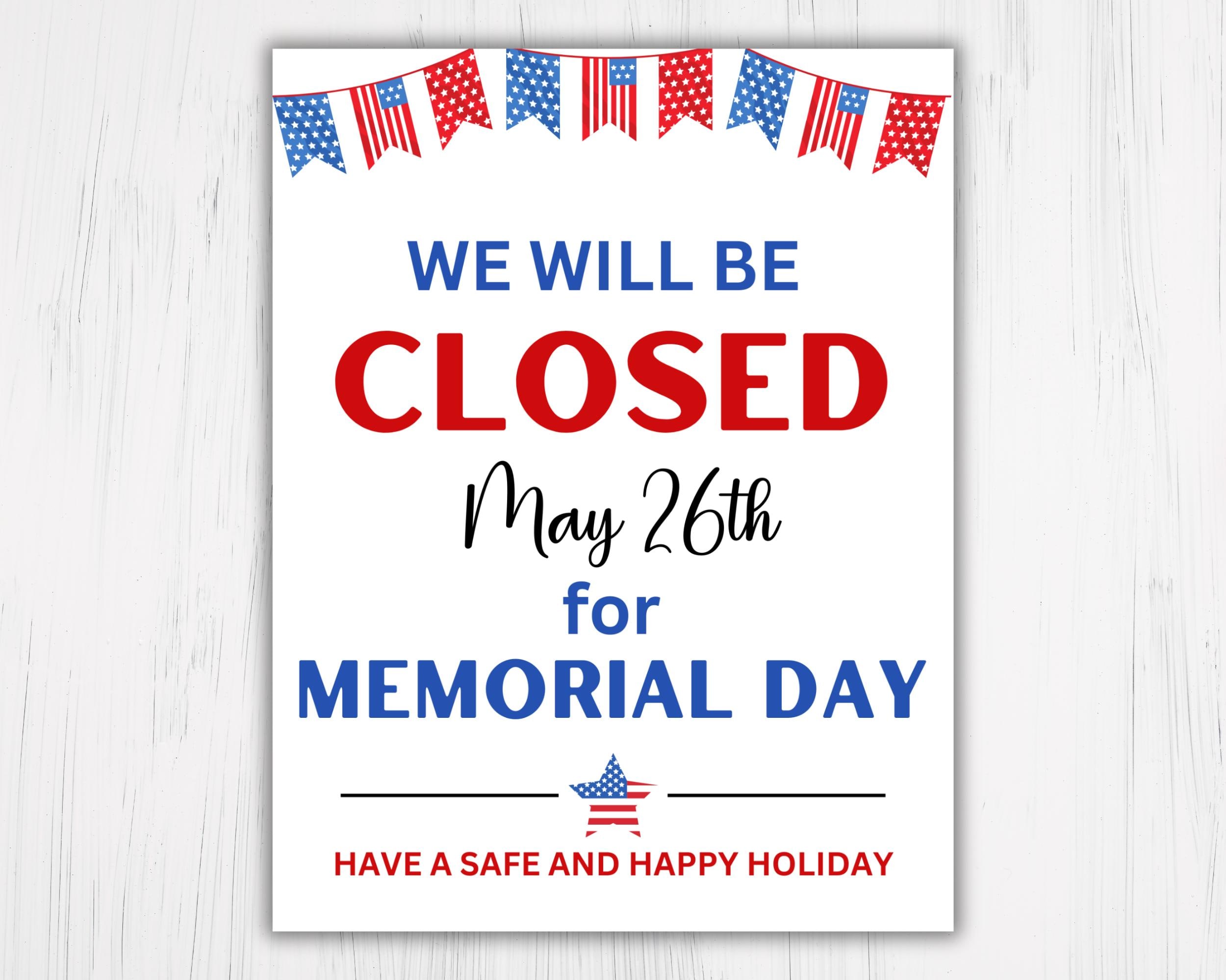Closed on Memorial Day Sign PRINTABLE Open/closed Memorial Etsy