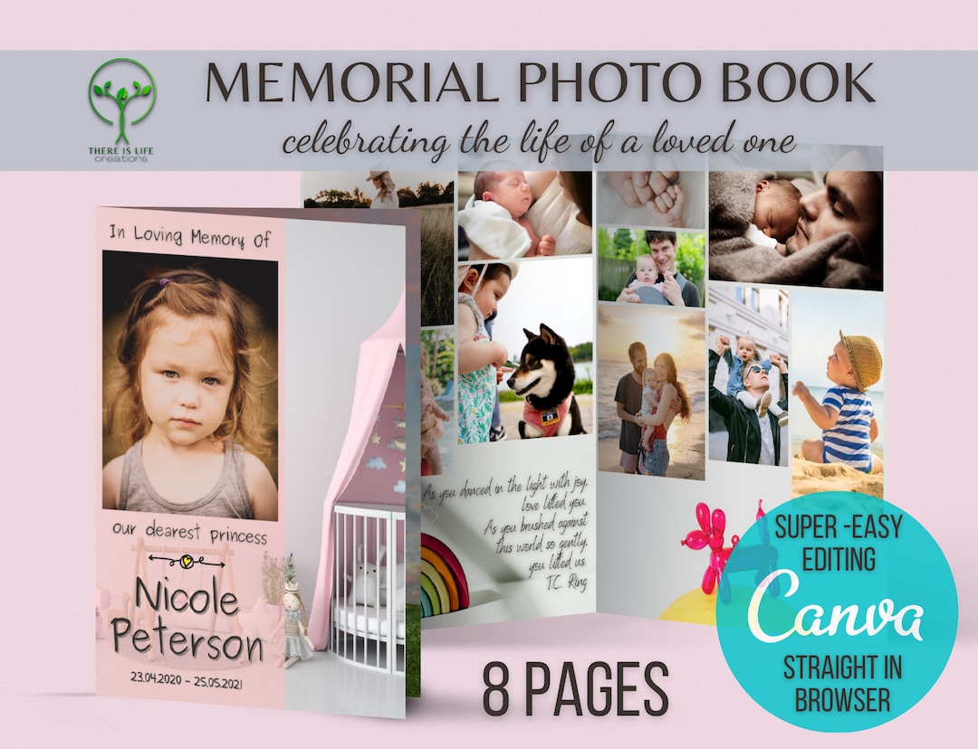 Memorial Photo Book for Loss of Baby Girl Canva Template / Condolence