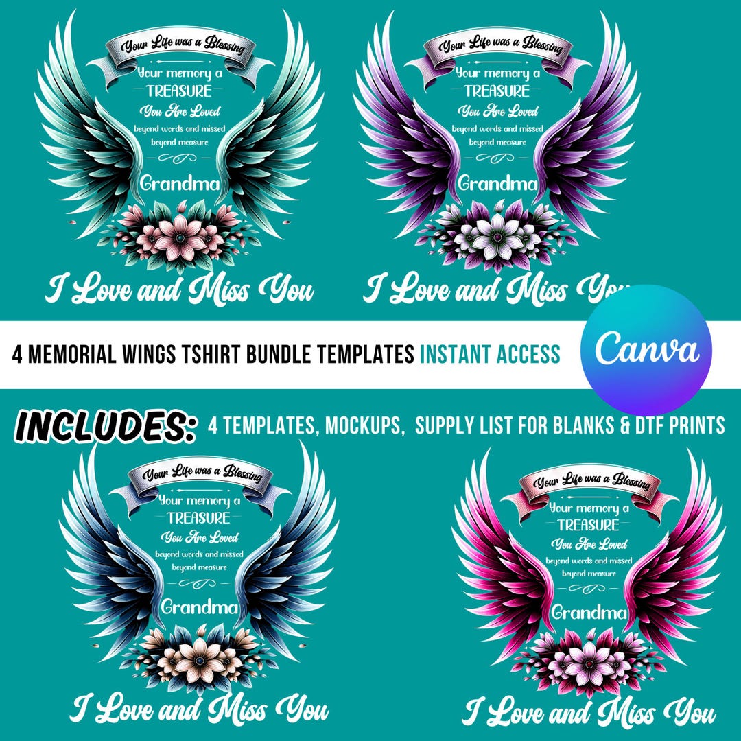 21 Memorial T shirt Designs Angel Wings Canva Template in Memory