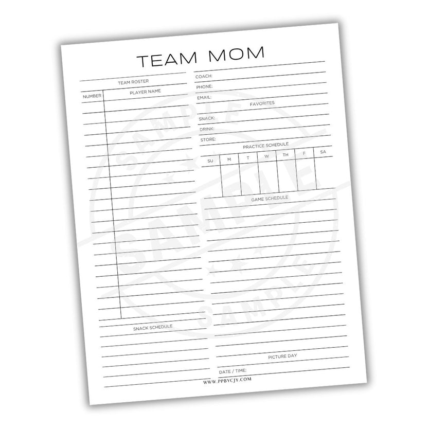 Team Mom Sheet Printable PDF Template Coach Favorites Info Log