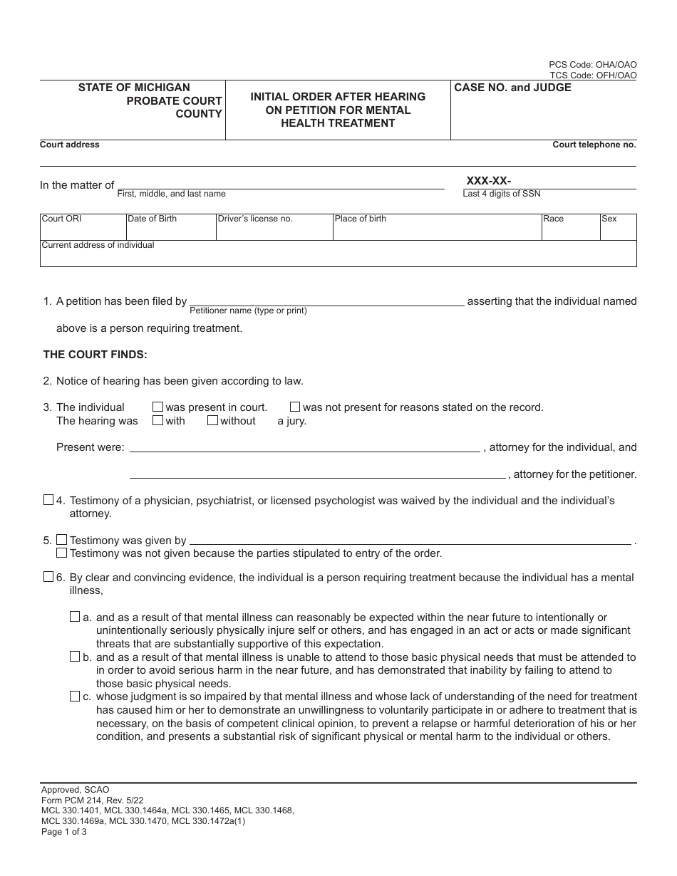 Form PCM214 Download Fillable PDF or Fill Online Initial Order After