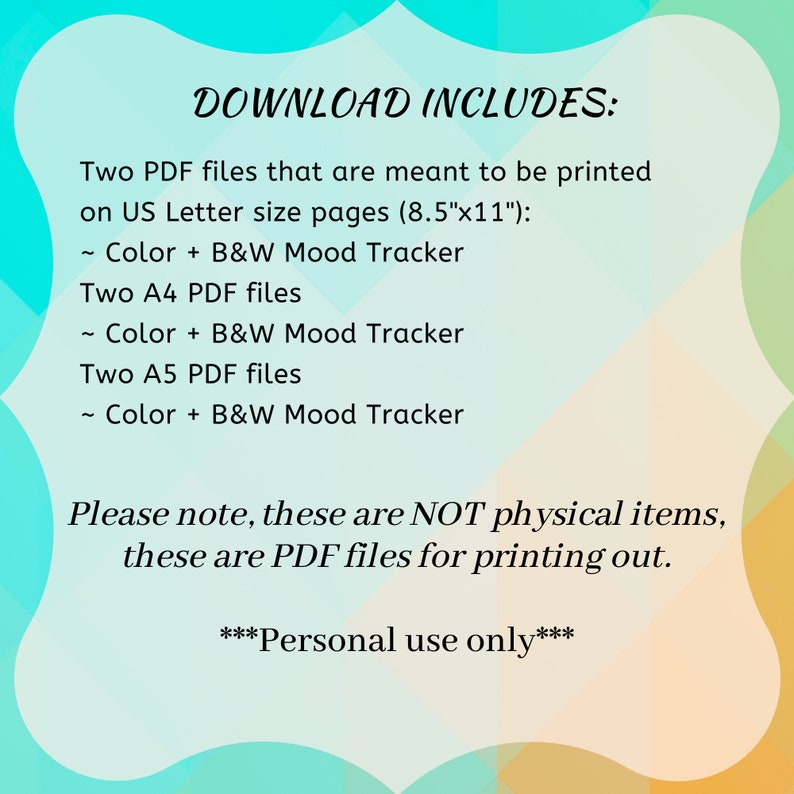 Mental Health Mood Tracker Printable Digital Download Self Care Daily
