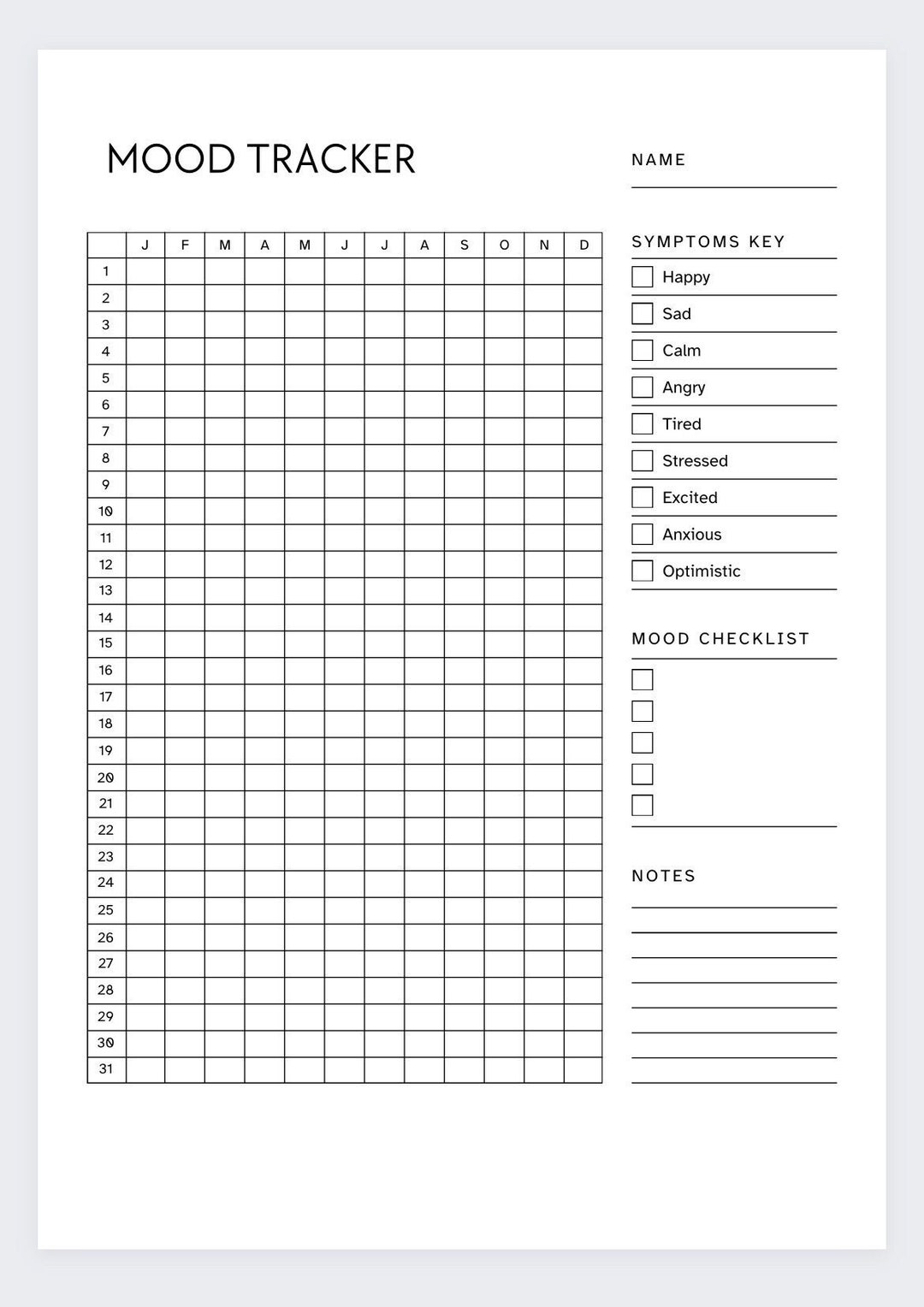 Printable Bullet Journal Mood Tracker: Downloadable PDF PNG and JPG