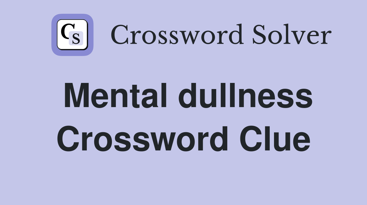 Mental dullness Crossword Clue Answers Crossword Solver
