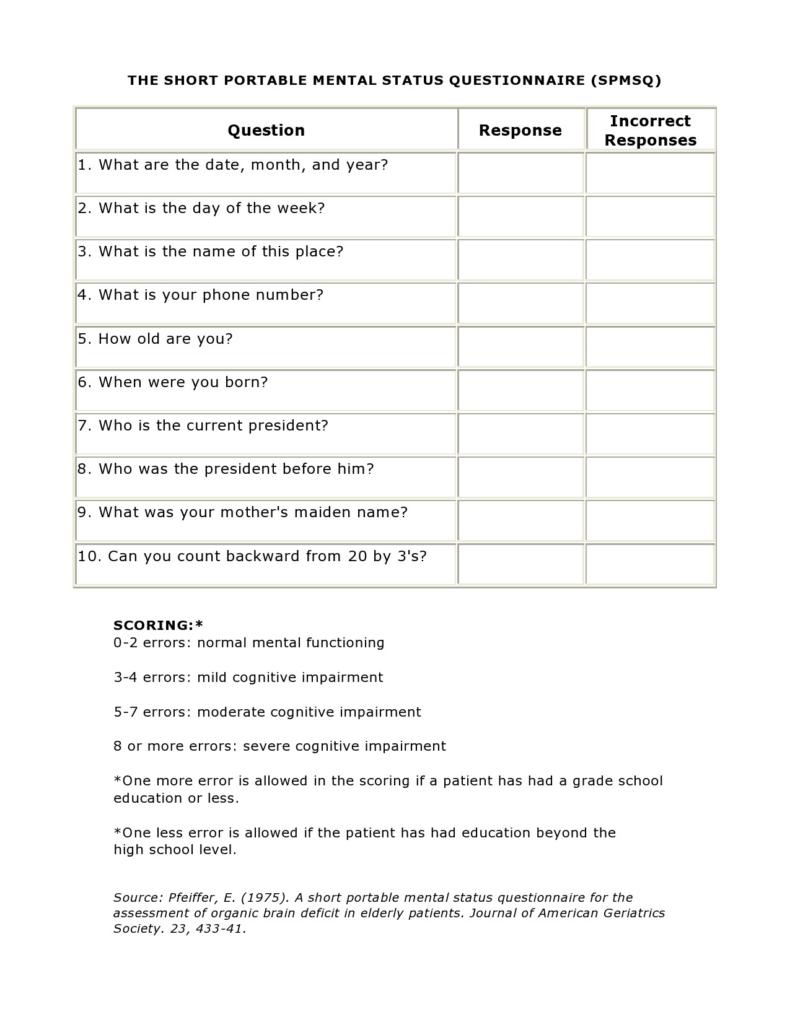 Free Printable Mental Status Exam Templates PDF Word Worksheet