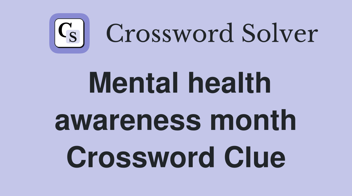 Mental Health Awareness Month Crossword Clue Answers Crossword Solver