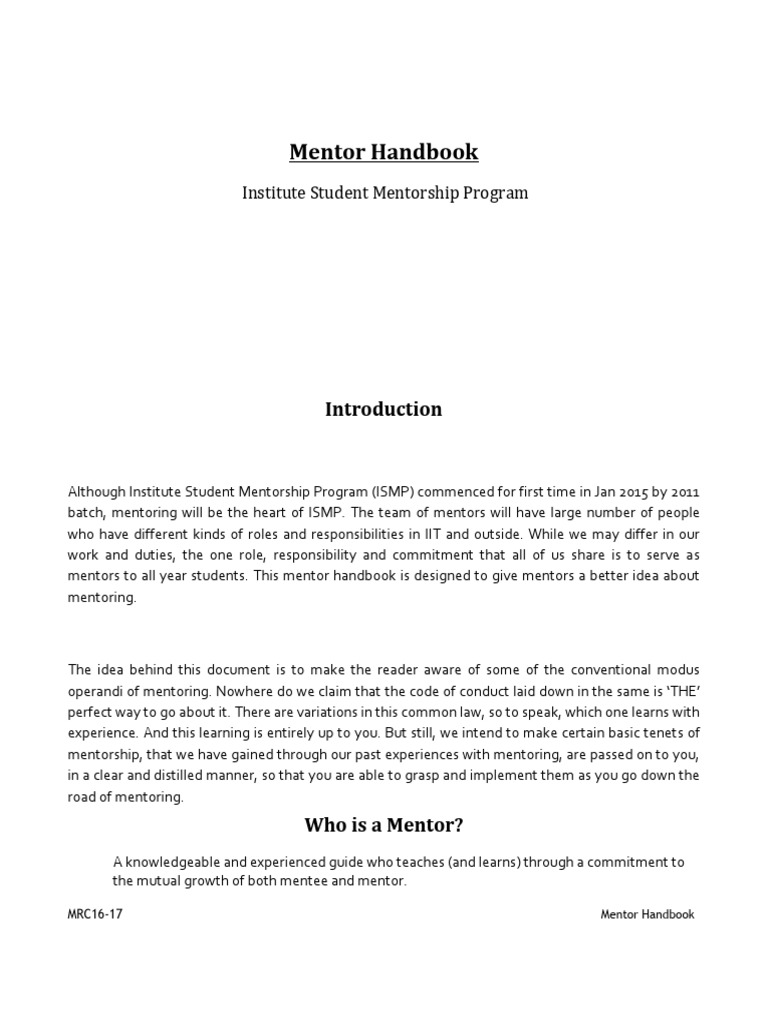 Mentor Handbook pdf Introduction 3 What #39 s in it for me? 4 Mentor role