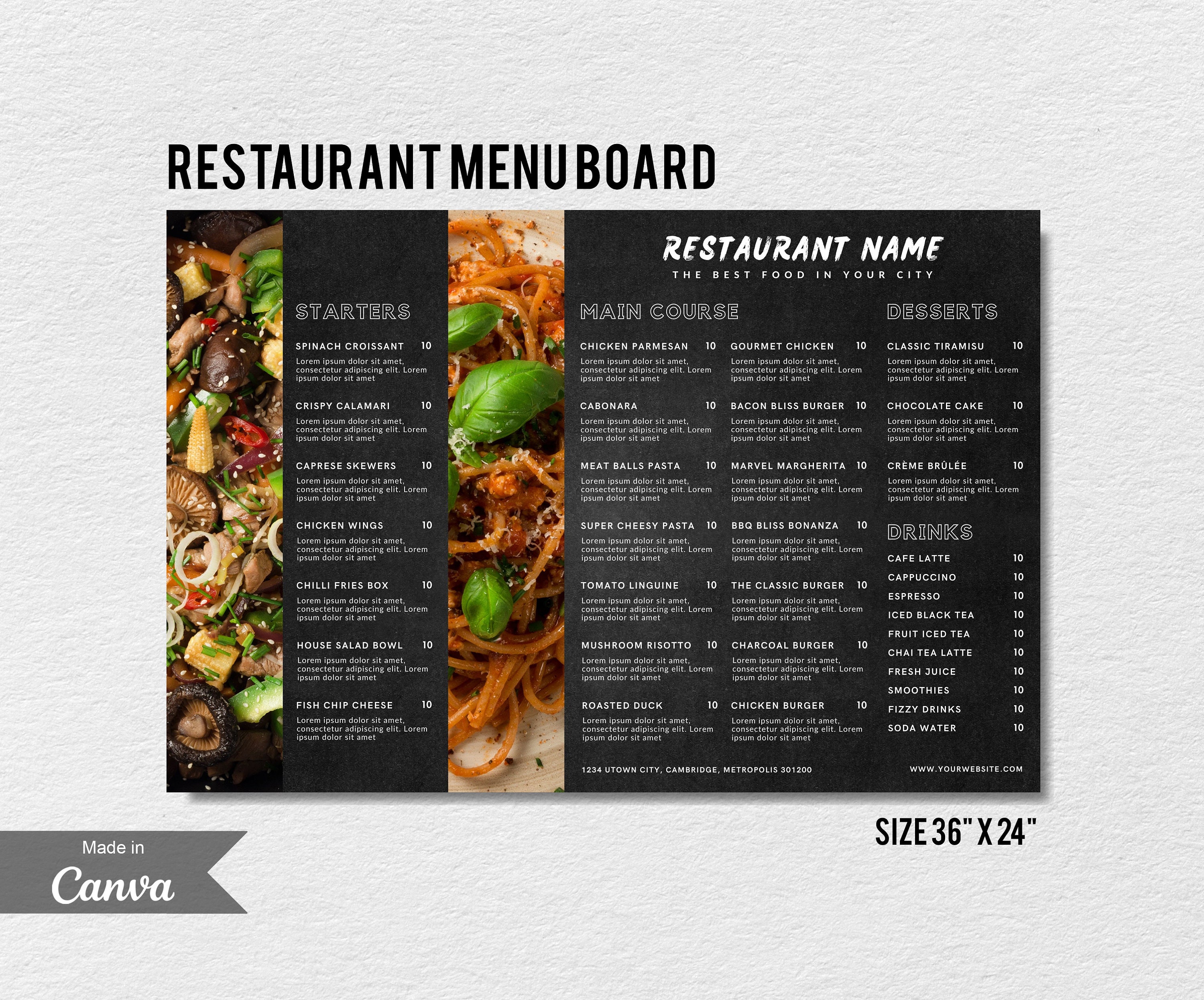 Modern Restaurant Menu Board Template Bundle Editable Menu Template