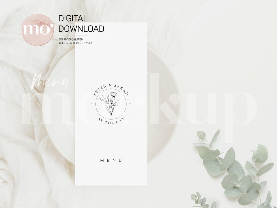 Minimalist Menu Mockup Template Wedding Menu Mockup Menu Card Mockups