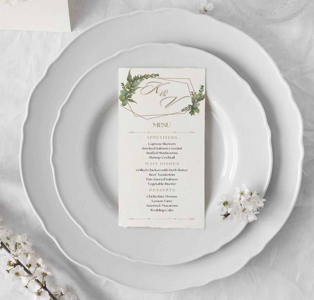 Personalizable Menu Template Minimalist Wedding Monogram Editable