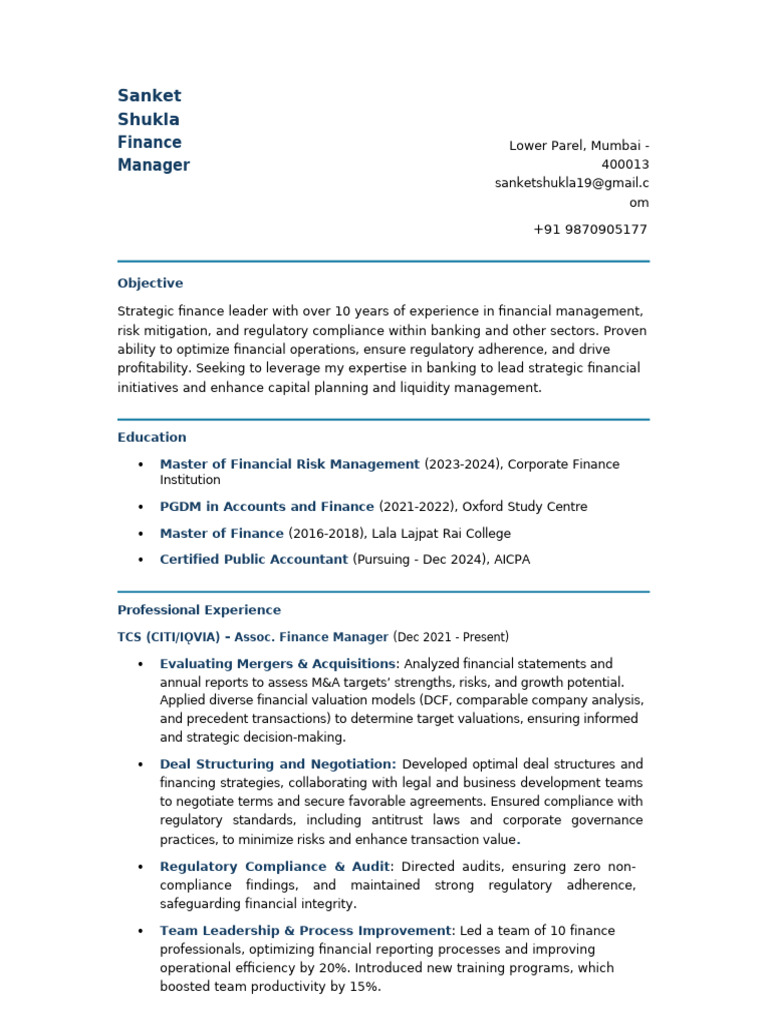 Mergers Acquisitions Resume: Winning Examples for 2024 ResumeHead