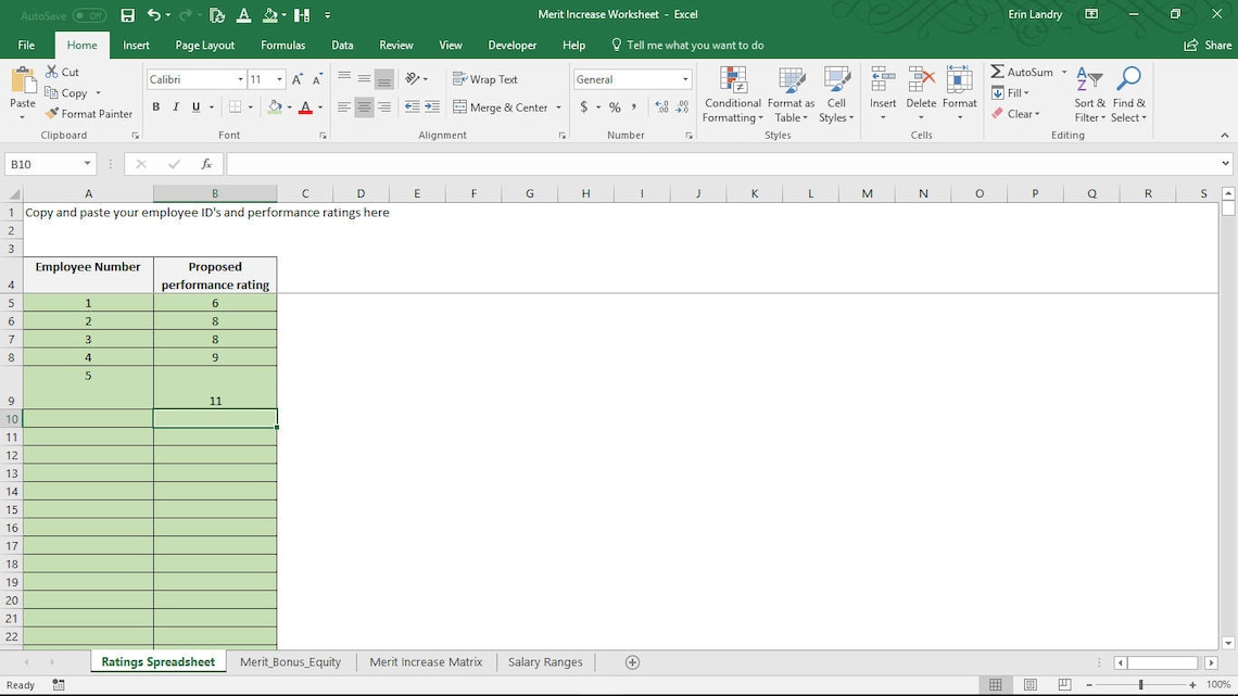 Merit Increase Matrix Template