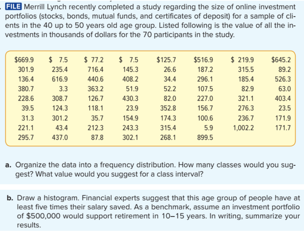 SOLVED: Merrill Lynch recently completed a study regarding the size of