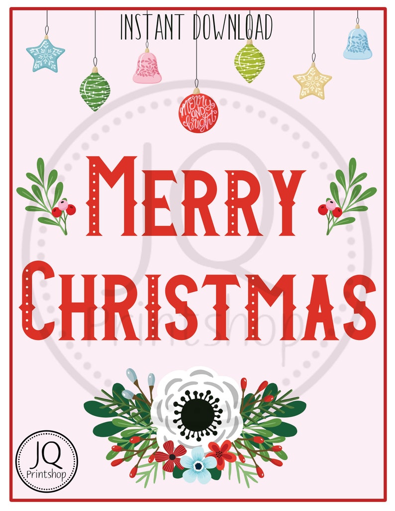Printable Christmas Art Merry Christmas Print Christmas Etsy