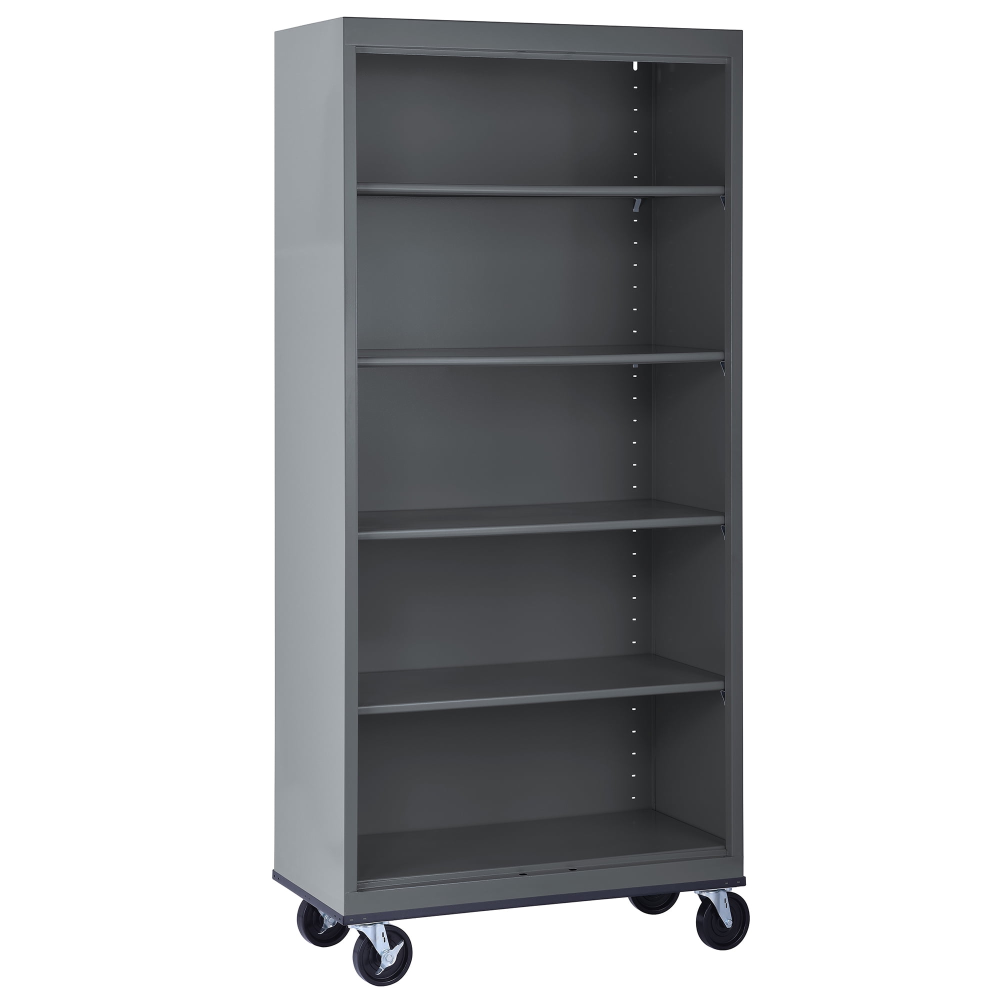 Sandusky Mobile Bookcase 78in Charcoal Metal 5 Shelves with Casters