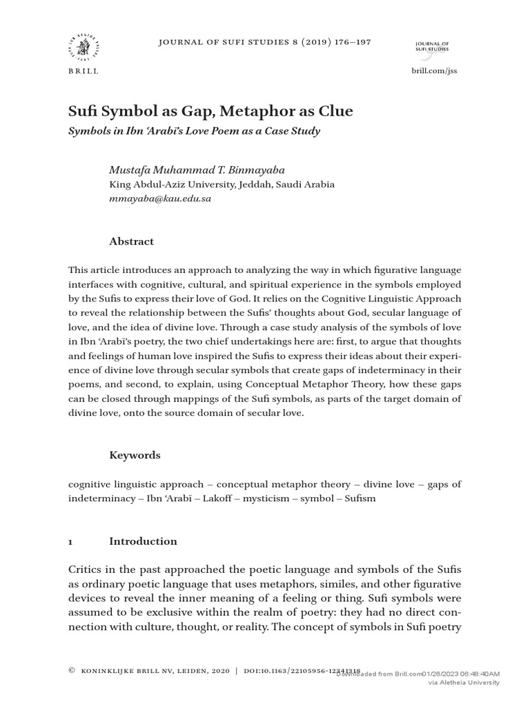 Sufi Symbol As Gap Metaphor As Clue Symbols in Ibn Arabi #39 s Love Poem