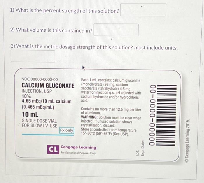 Solved 1) What is the percent strength of this sofution? 2) Chegg com