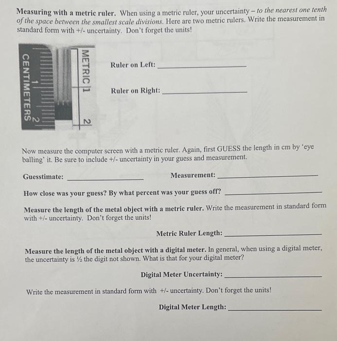 Solved Measuring with a metric ruler When using a metric Chegg com