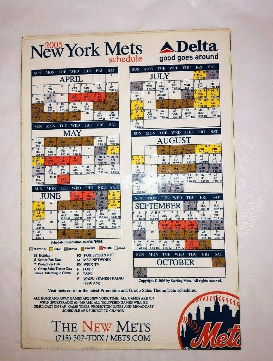 Printable Mets Schedule