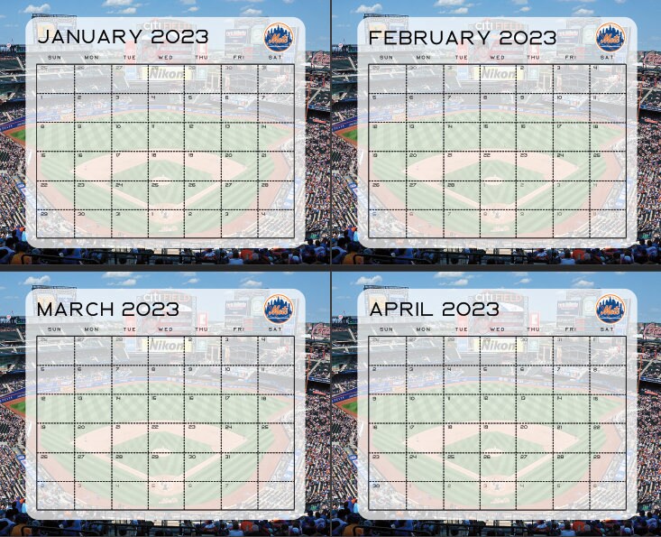 New York Mets Printable 2023 Monthly Calendar Instant Etsy