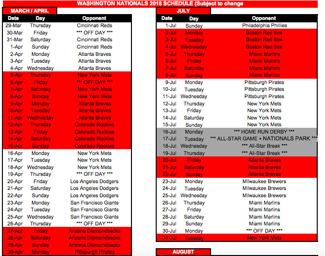 Printable 2018 New York Mets Schedule