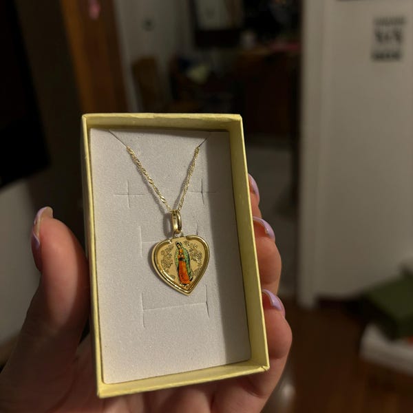 14k Solid Gold Virgin Mary Aztec Calendar Pendant Virgin Mary On One