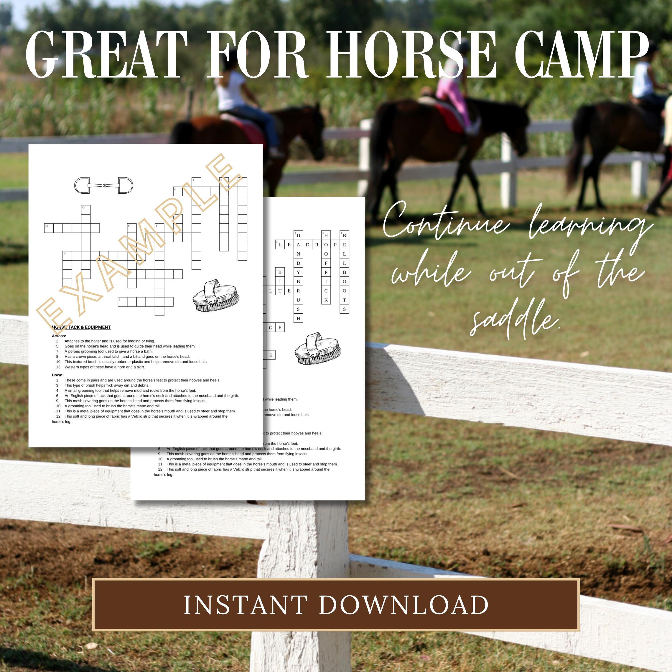 Horse themed Crossword Puzzle Bundle Horse Camp Activity or Game