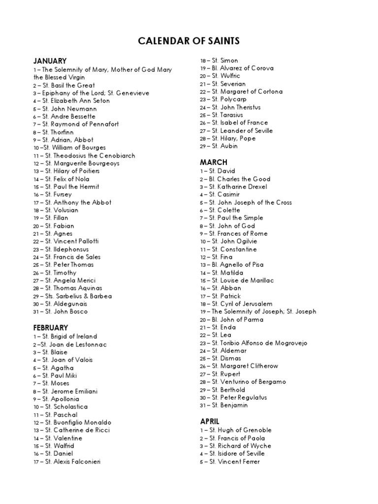 Calendar With Names Of Saints prntbl concejomunicipaldechinu gov co