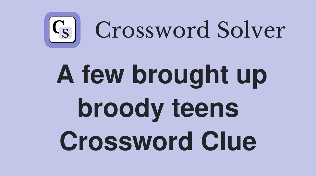 A few brought up broody teens Crossword Clue Answers Crossword Solver