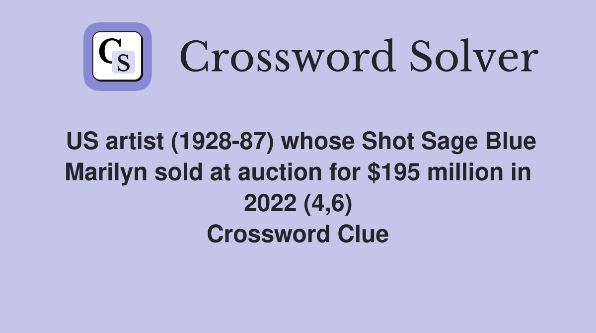 US artist (1928 87) whose Shot Sage Blue Marilyn sold at auction for