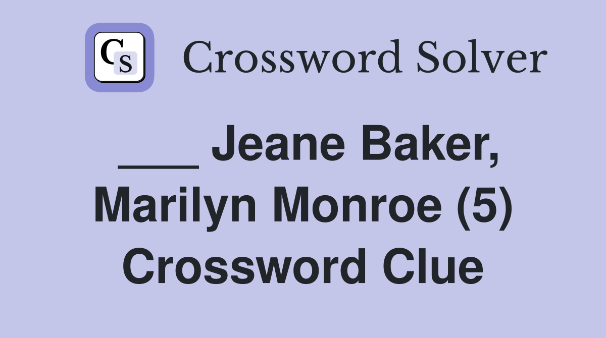 Jeane Baker Marilyn Monroe (5) Crossword Clue Answers Crossword Solver