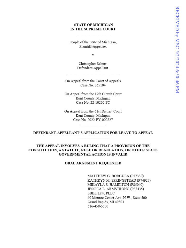 Schurr Appeal to MI Supreme Court Download Free PDF Taser Appeal