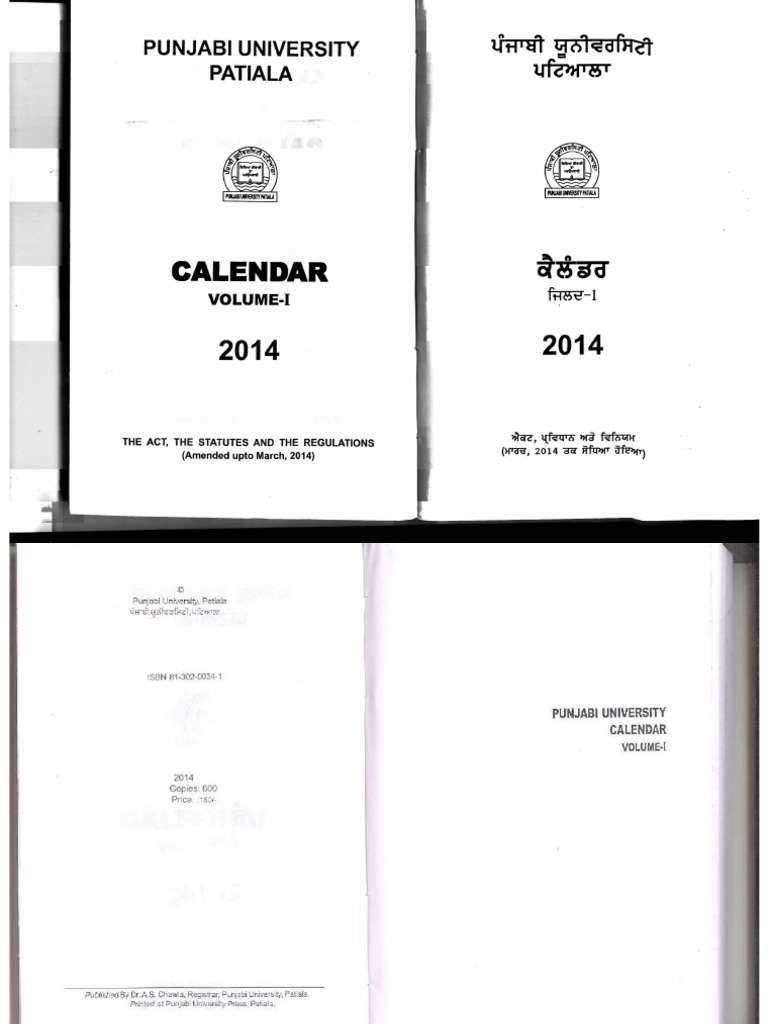 PUNJABI UNIVERSITY CALENDER VOLUME 1 2014 PDF