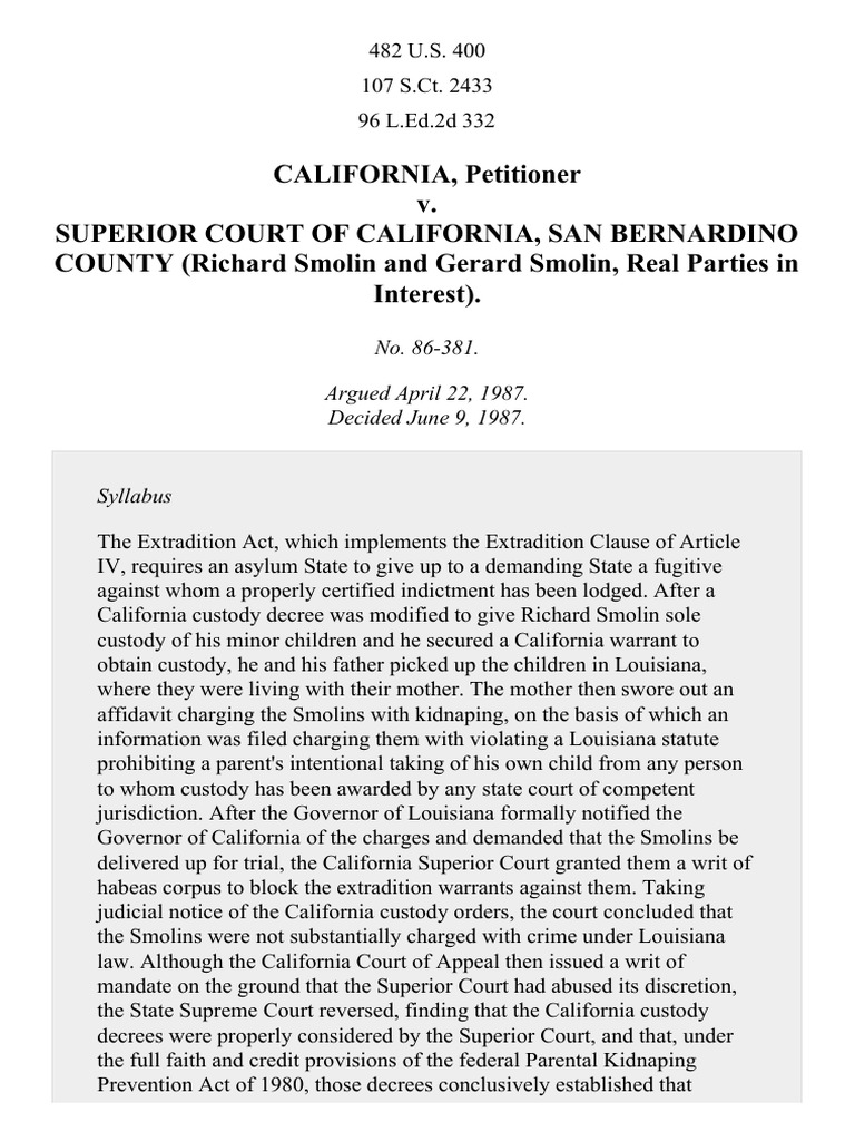 California v Superior Court of Cal San Bernardino Cty 482 U S 400